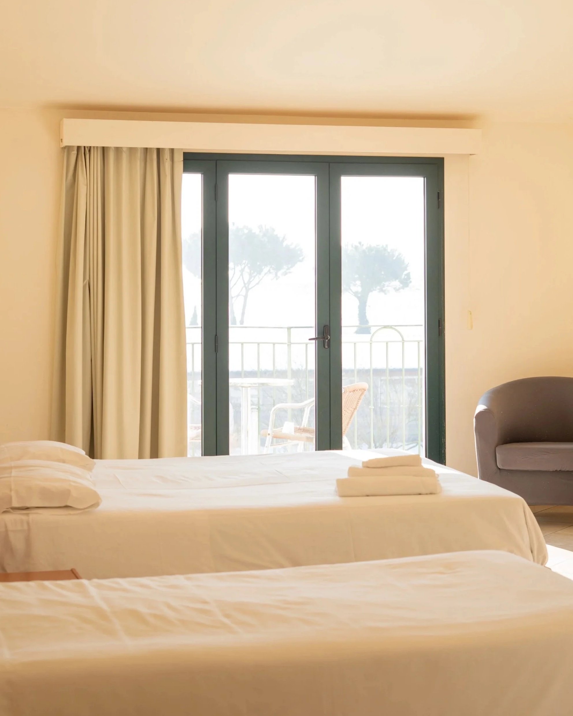 Pensata per chi viaggia in piccolo gruppo, la Camera Tripla offre maggiore vivibilità senza rinunciare alla semplicità e alla funzionalità.